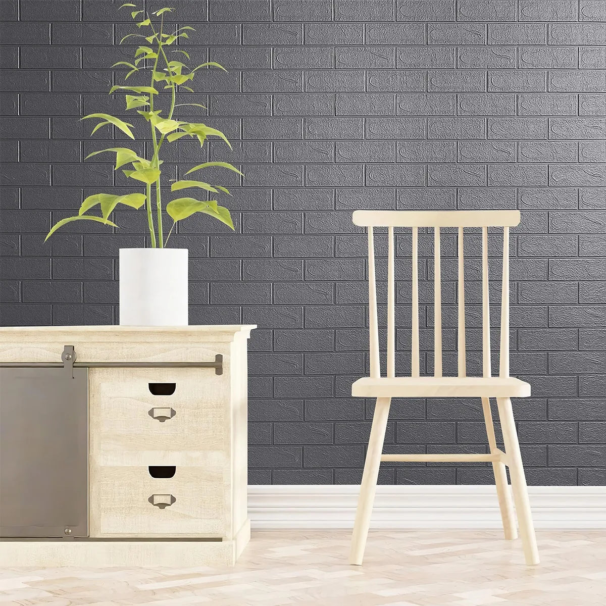 Este modelo de revestimiento de color gris plateado es ideal para colocar en ciertos espacios especiales, donde puede haber maquinas o computadoras. Es un diseño oscuro, pero es muy brillante por ende logra una transformación las paredes de tu casa, con el realismo y la textura de una pared pintada y en 3D.
