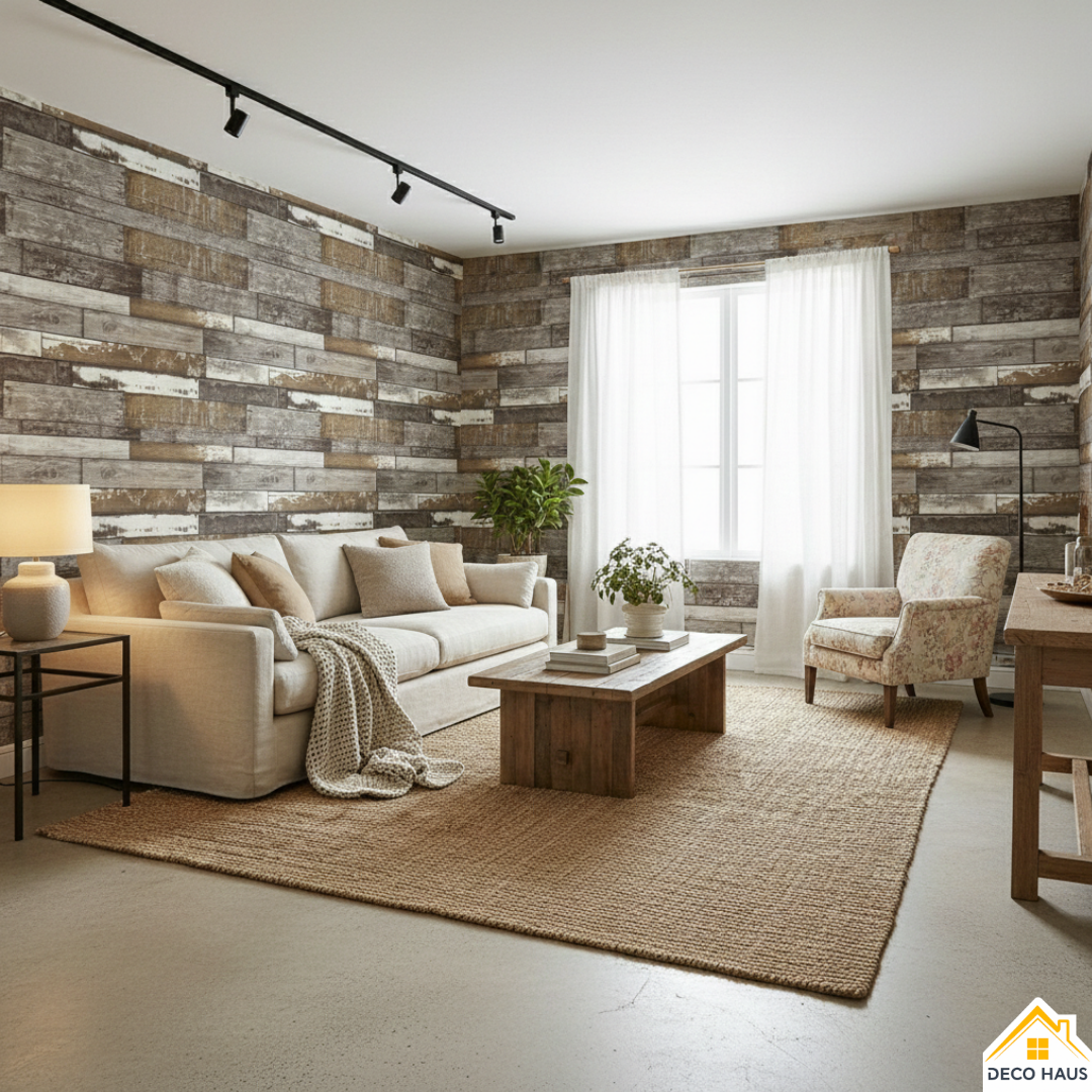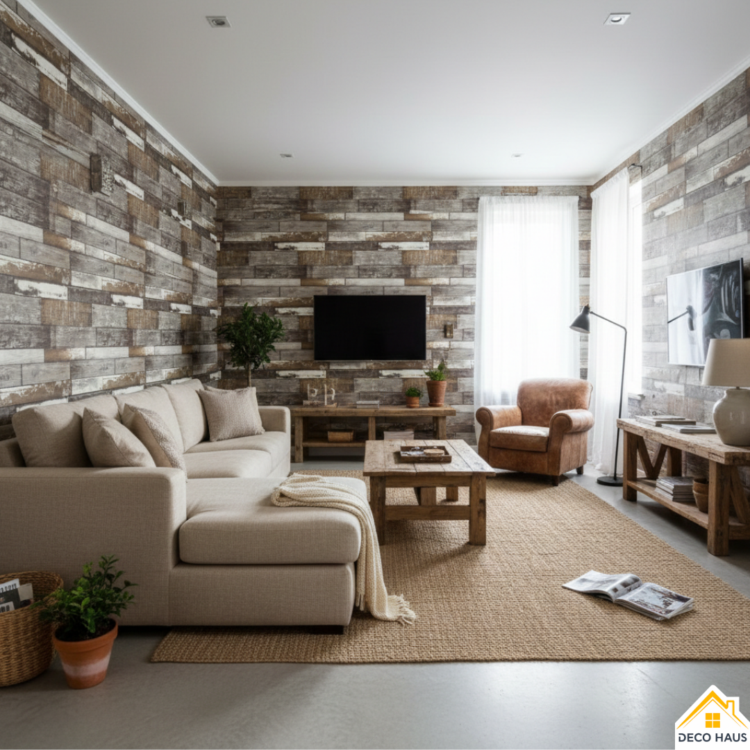Este modelo de revestimiento (M1) de madera es muy elegante y natural, ya que simula un patrón de madera rústica, y logra una transformación espectacular las paredes de tu casa, con el realismo y la textura de la madera natural en 3D.