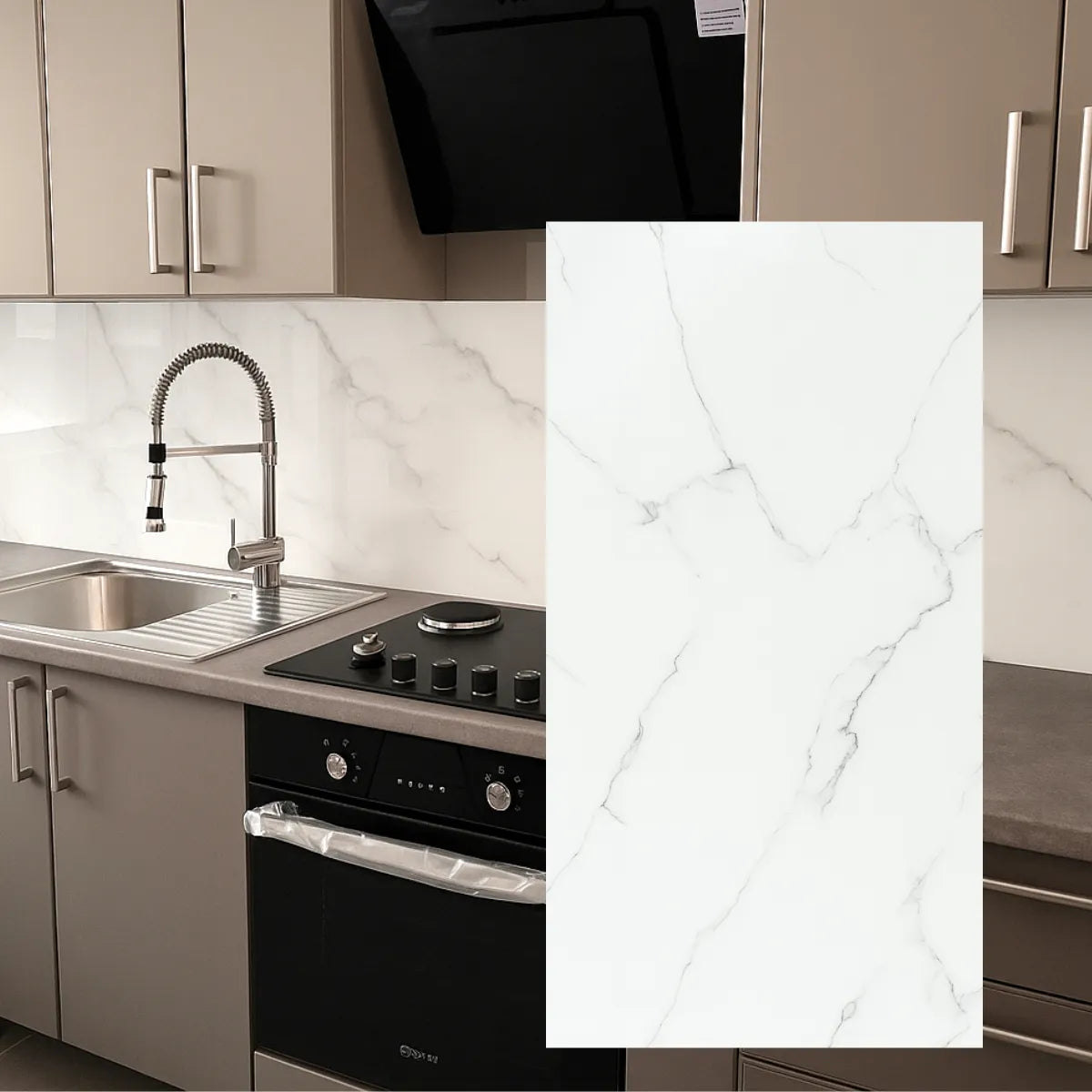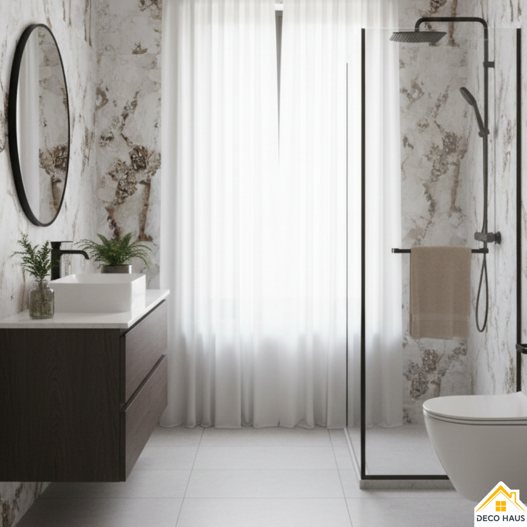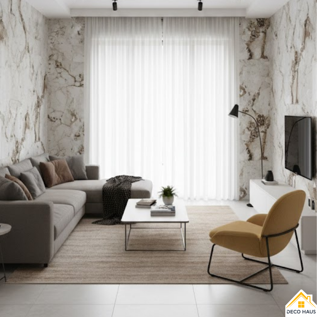 Este modelo de revestimiento simil mármol es muy elegante y natural, ya que simula un patrón de marmol real, y logra una transformación espectacular las paredes de tu casa.