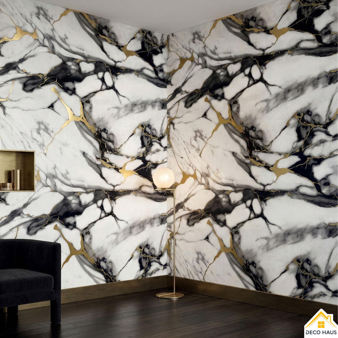 Este modelo de revestimiento simil mármol es muy elegante y natural, ya que simula un patrón de marmol real, y logra una transformación espectacular las paredes de tu casa.