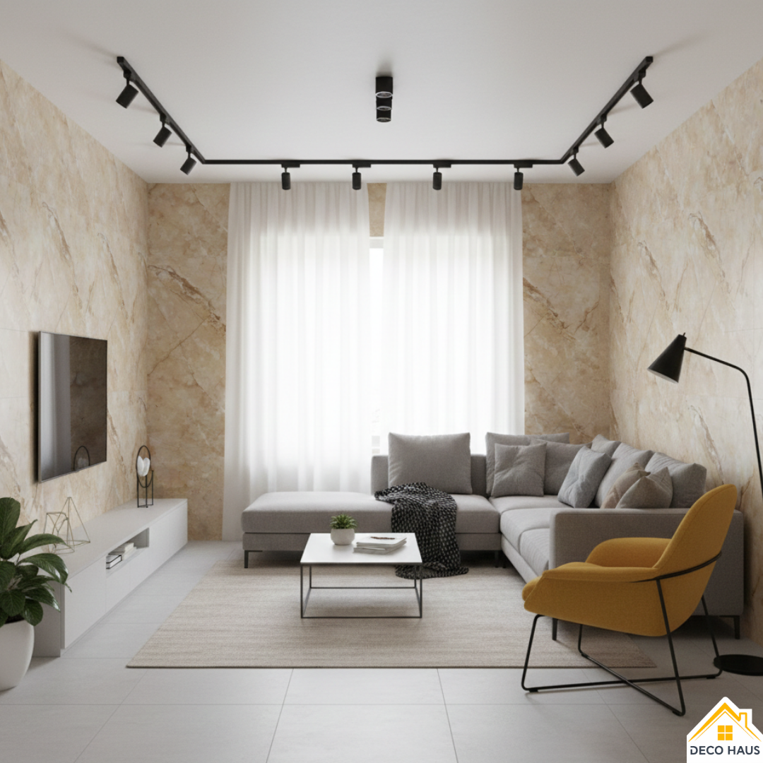 Este modelo de revestimiento simil mármol es muy elegante y natural, ya que simula un patrón de marmol real, y logra una transformación espectacular las paredes de tu casa.